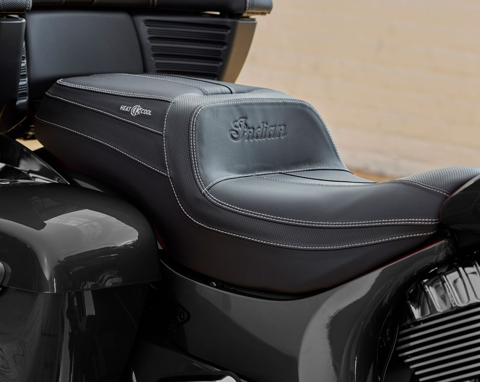 7" touchscreen powered by RIDE COMMAND with Apple CarPlay® integration; Power Windshield; Highway Bars; Vinyl Rogue Seats; Heated Grips; Adjustable Passenger Floorboards; 164 Litres of Storage; Tire Pressure Monitoring; Remote-locking Hard Saddlebags & Trunk; Selectable Ride Modes; Rear Cylinder Deactivation; ABS; Cruise Control; Keyless Ignition; 200 Watt Audio System with AM/FM, Bluetooth, USB, Smartphone Compatible Input; 12V Charging Port